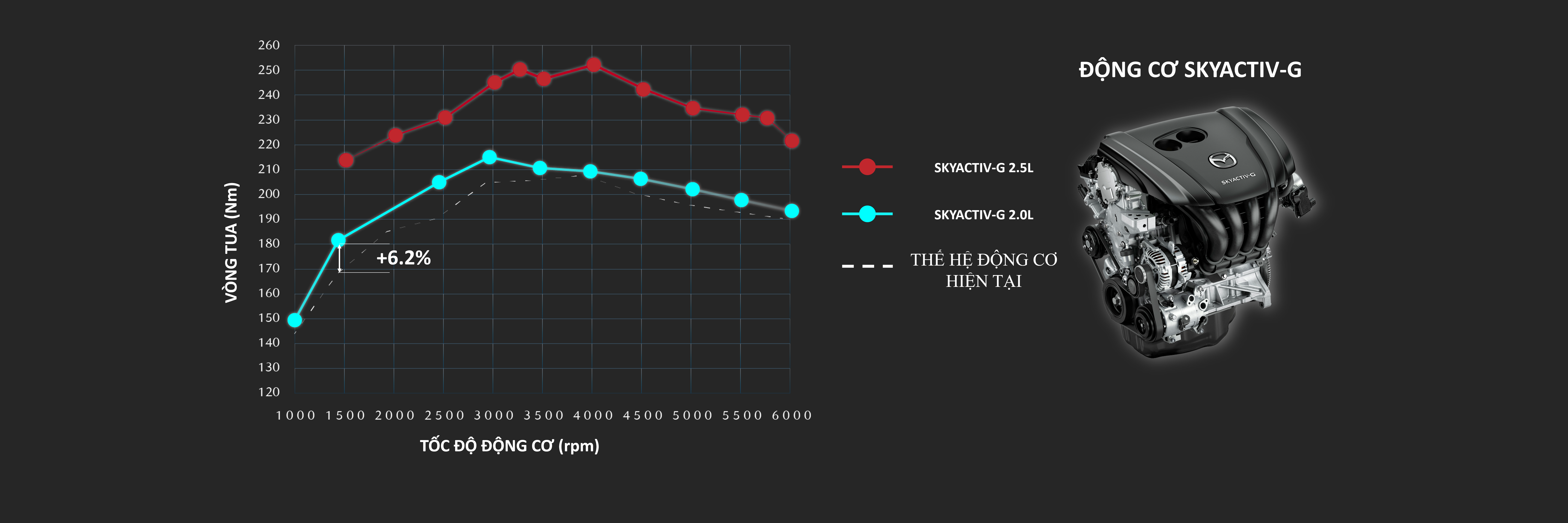 Động cơ SkyActiv mới, được nâng cấp mạnh mẽ hơn với các tiêu chuẩn cao hơn về khả năng vận hành, tiết kiệm nhiên liệu và kiểm soát khí thải, đặc biệt hiệu quả trong điều kiện di chuyển với vận tốc thấp và trung bình hàng ngày.